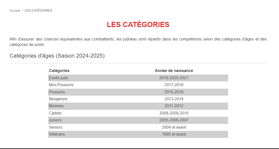 CATEGORIES D'AGES 2024 2025